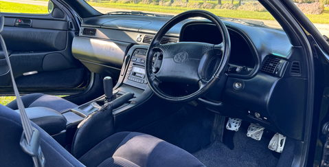 This Soarer boasts a rare and desirable black exterior and interior combination, amplifying its sleek and timeless appeal. The Series III body, distinguished by subtle updates to its styling, enhances the car’s elegant yet aggressive demeanor. Its turbocharged hardtop configuration further adds to its rarity, ensuring this Soarer stands out in any collection or on the road. The factory dual exhaust setup complements its performance pedigree, offering a refined yet sporty exhaust note.